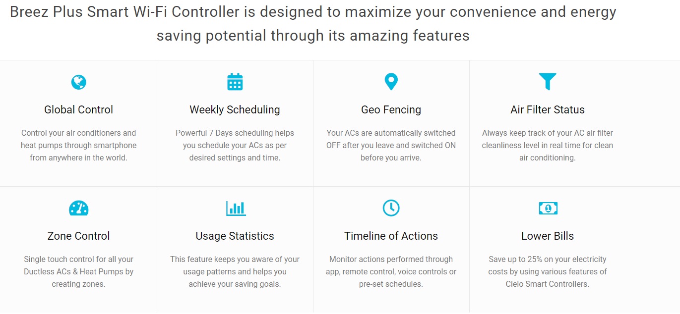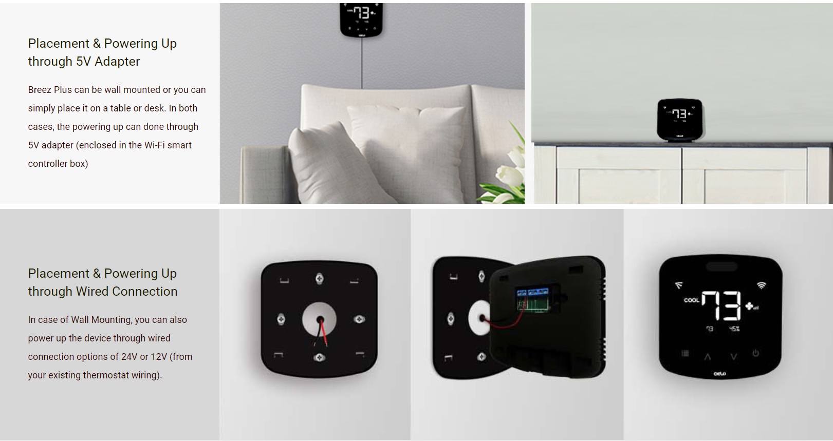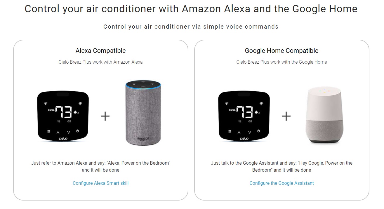 Newest Cielo Breez Plus BP101WA is a plug and play universal smart air conditioner controller/thermostat. It connects through WiFi allowing you to use your smartphone, Alexa or Google Home to control your AC / Heat Pump system. It is simple to install. It does not need extra wiring, just plug in the Micro USB power cord and hang it on a wall or set it on a table. As long as the BP101WA is with in line of sight of the air handler it can communicate with IR signals.